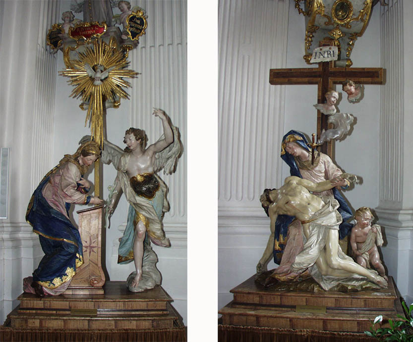 Bei Prozessionen führten die Bruderschaften tragbare Figuren mit. Die beim Augustiner-Chorherrenstift Weyarn errichtete Rosenkranzbruderschaft bestellte 1764 Tragefiguren (Verkündigung und Pietà) beim Münchner Bildhauer Ignaz Günther. (Foto: Arbeitskreis Geschichte Weyarn)