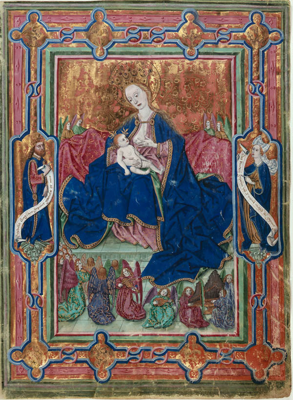 Bibel mit einer Darstellung der Maria Lactans. Regensburg, Berthold Furtmeyr, zwischen 1465 und 1470. (Bayerische Staatsbibliothek, Cgm 8010a, f. 2r)