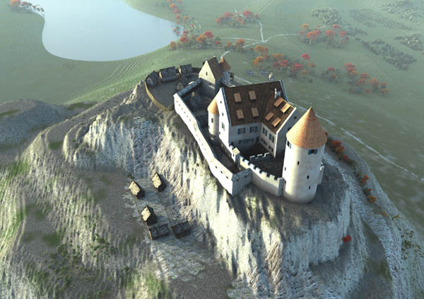 Hohenfreyberg, 1430, von Südosten. (Visualisierung ReUnion-Büro für Burgen)