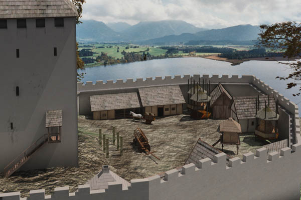 Burg Hopfen am See, Rekonstruktion, um 1080. (Visualisierung AMOS-Büro für Burgenforschung Dr. Zeune & ReUnion 2007)