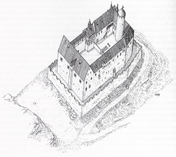 Die Plassenburg um 1500. Rekonstruktionszeichnung von Daniel Burger. (aus: Daniel Burger, Die Landesfestungen der Hohenzollern in Franken und Brandenburg im Zeitalter der Renaissance [Schriftenreihe zur bayerischen Landesgeschichte 128], München 2000, 58)