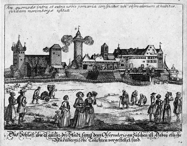 Die Nürnberger Burg von Norden 1689. Kupferstich von Johann Alexander Böner (1647-1720). (Bayerische Staatsbibliothek, Porträt- und Ansichtensammlung)