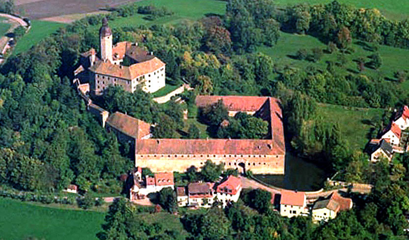 Das Deutschordensschloss Virnsberg Das Luftbild zeigt die bis ins Mittelalter zurückreichende, barock veränderte Hauptburg und den zugehörigen Wirtschaftshof [Schlossverein Virnsberg eV]