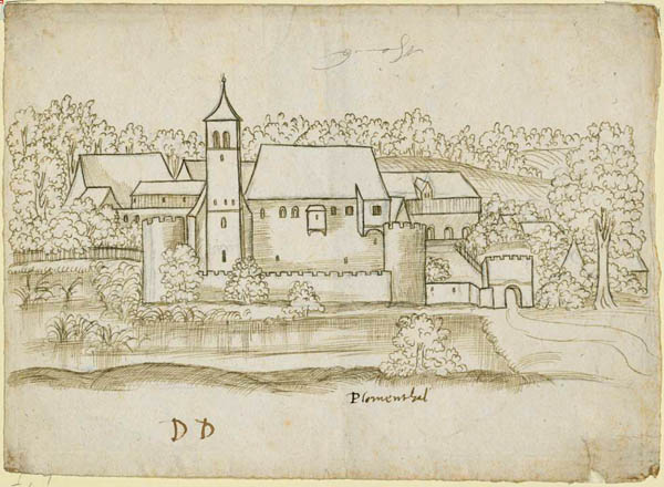 Die Deutschordens-Kommende Blumenthal Ansicht von Philipp Apian [1531-1589] um 1554/1585 [Bayerische Staatsibibliothek, Cgm5379,3]