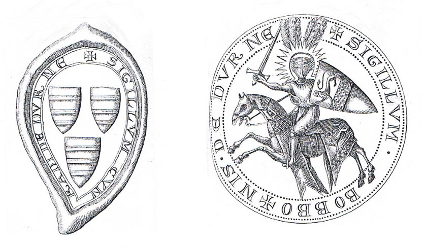 Siegel mit Wappen von Konrad I von Dürn und Boppo I [aus: Valentin Ferdinand von Gudenus, Codex diplomaticus 3 Band, Göttingen 1751, S668]