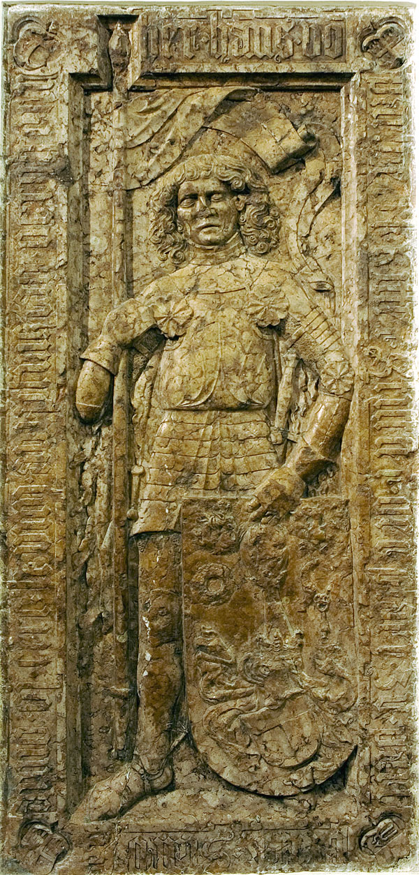 Epitaph des Ritters Hans (2) von Parsberg (†1469) in der Pfarrkirche von Parsberg. Er war der Stifter der Pfarrei Parsberg (1444) und wahrscheinlich Erbauer einer ersten Pfarrkirche (um 1459). (Foto: Pfarrei St. Andreas Parsberg)