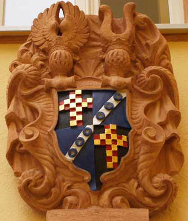 Ingelheim-Echtersches-Wappen am ehemaligen Domherrnhof St Gallus in Würzburg [Kardinal-Döpfner-Platz 1] [Foto: Bernhard Peter [genehmigt532010]]