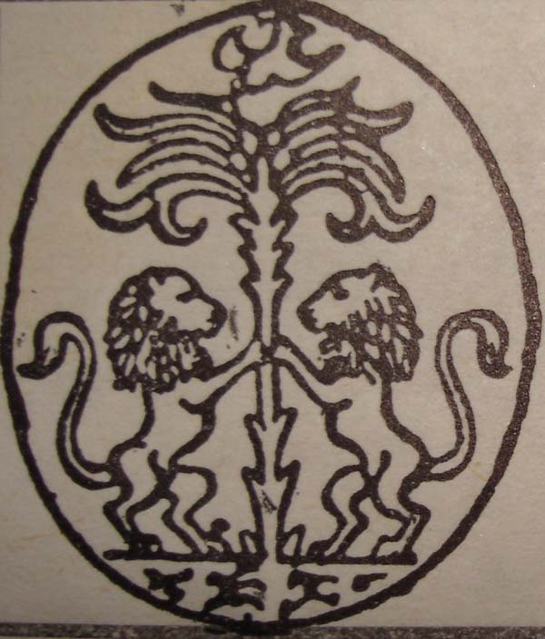 Ordenswappen der Pauliner mit den Attributen des hl Paulus von Theben Bibliothekssignet aus Jasna Góra in Tschenstochau [6,4 cm x 4,0 cm], Detail[Privatbesitz]