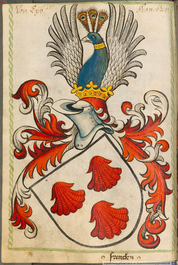 Das seit ca. 1400 verwendete Wappen der Familie Eyb. Darstellung im Scheiblerschen Wappenbuch. (Bayerische Staatsbibliothek, Cod.icon. 312 c, 202)