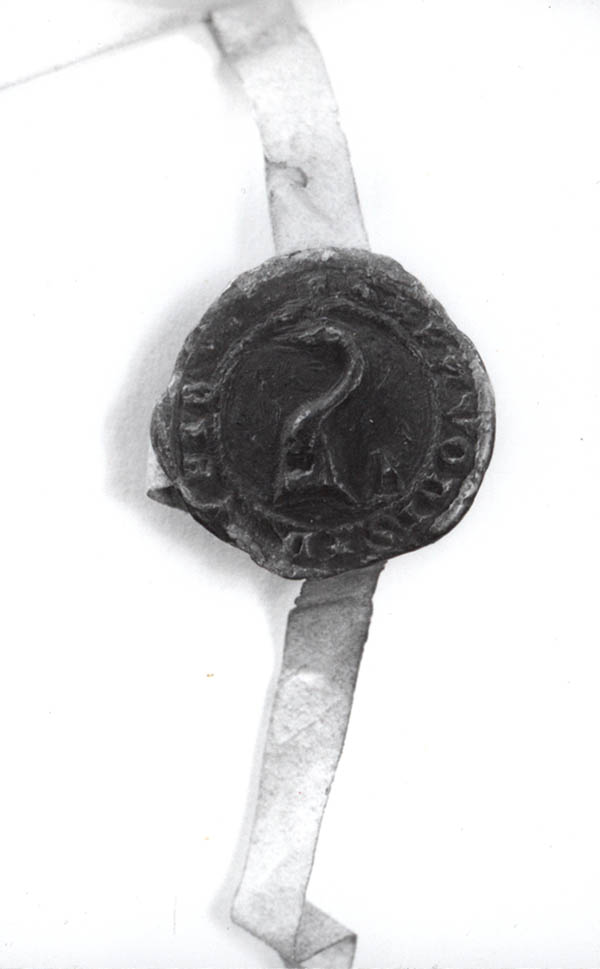 Ältere Wappenform mit Pfau auf einem Siegel des Heinrich Pfob von Eyb zu Oberbach von 1465. (Archiv Eyb Rammersdorf Urk. 1)
