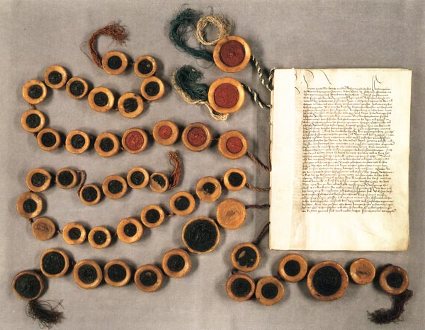 Primogeniturordnung für das Herzogtum Bayern, ausgestellt von der bayerischen Landschaft. (Bayerisches Hauptstaatsarchiv, Bayerische Landschaft Urkunden 1506 VII 8)