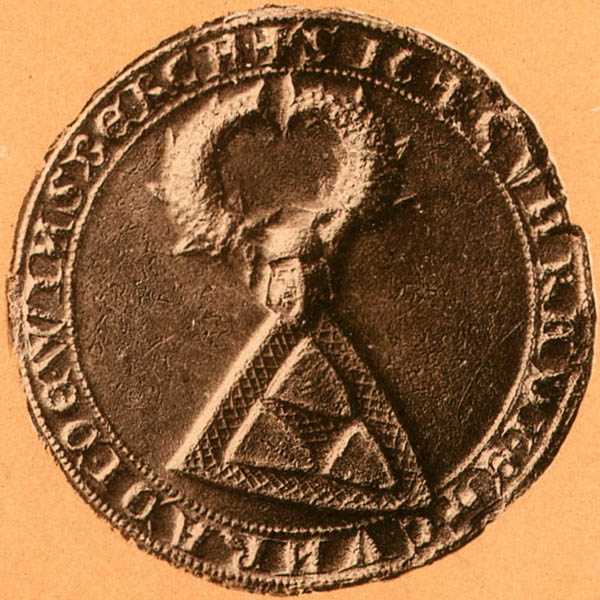 Siegel Konrads von Weinsberg von 1284. Abb. aus: Eduard Paulus, Die Kunst- und Alterthums-Denkmale im Königreich Württemberg. Neckarkreis, Tafelband, Stuttgart 1889, Tafel "Siegel aus dem K. Haus- und Staats-Archiv zu Stuttgart". (Bayerische Staatsbibliothek, 2 Germ.sp. 201 c,II-1)
