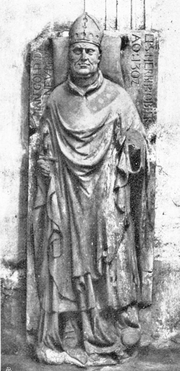 Das Grabmal Bischof Manegolds [gest 1303] ist das erste, welches das Schwert zeigt [aus: Valentin Clemens Hessdörfer, Der Dom von Würzburg und seine Denkmäler, Würzburg 1902, S27]