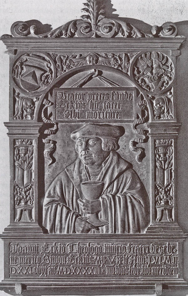 Grabmal von Johannes Eck (gest. 1543). Der bedeutende Ingolstädter Universitätsprofessor und profilierte Luthergegner ist einer der berühmtesten Bestatteten im dortigen Liebfrauenmünster. (Kommission für die Herausgabe der Deutschen Inschriften des Mittelalters und der frühen Neuzeit)