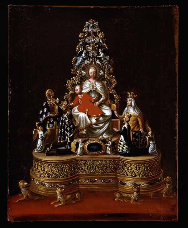 Das Marienbild, das dem Ingolstädter Liebfrauenmünster den Namen gab, auf einem Gemälde um 1760. Es handelt sich, wie auch bei dem vorübergehend dem Münster gehörenden Goldenen Rößl, um ein Werk der Pariser Hofkunst. Das als "Die Gnad" bezeichnete Werk wurde 1801 bei der Einziehung "überflüssigen" Kirchensilbers eingeschmolzen. (Bayerisches Nationalmuseum)