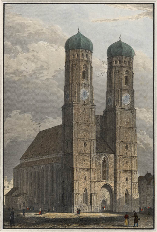 Die Frauenkirche, kolorierter Stahlstich von 1846. (Bayerische Staatsbibliothek, Bildarchiv, port-012048)