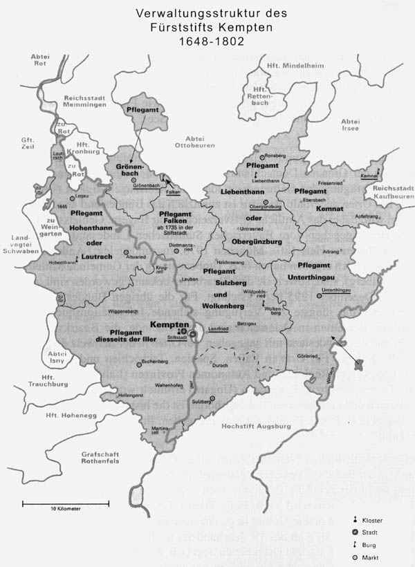 Ämterstruktur der Fürstabtei Kempten 1642-1802 [aus: Immler, Staatsarchiv Augsburg Fürststift Kempten Archiv, S1385]
