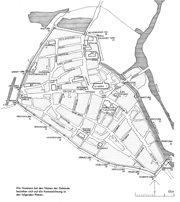 Die Altstadt von Dinkelsbühl Deutlich zeichnet sich der älteste Stadtkern ab, der durch die Wethgasse, Föhrenbergasse und die Untere Schmiedgasse markiert wird [aus: Helmut Gebhard, System, Element und Struktur in Kernbereichen alter Städte dargestellt an der Stadt Dinkelsbühl und den Nachbarstädten Rothenburg odT, Nördlingen und Donauwörth, Stuttgart/Bern 1969, S11]