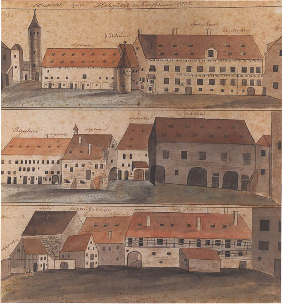 Das reichsstädtische Spital in Kaufbeuren vor 1825. (Stadtarchiv Kaufbeuren)