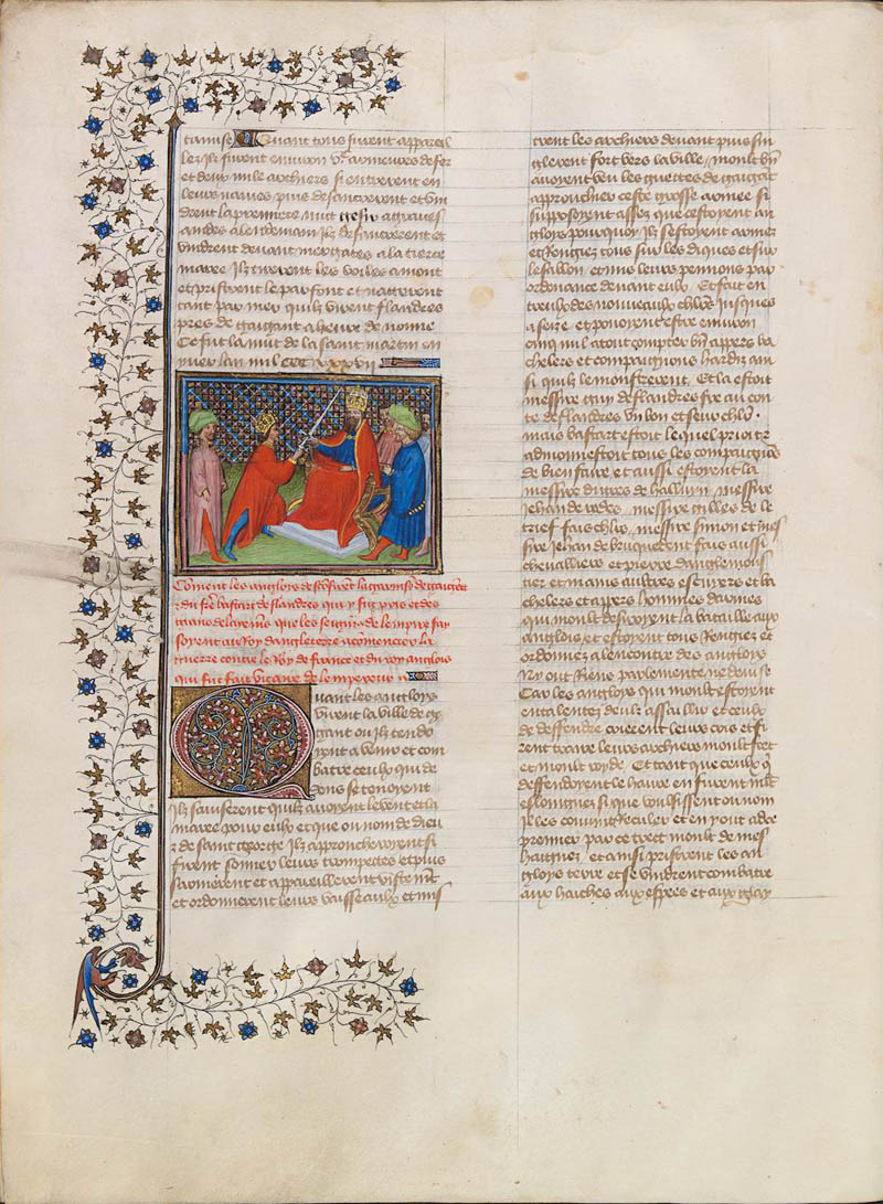 Die Hinrichtung des Hieronymus von Prag als Ketzer auf dem Konzil von Konstanz unter der Leitung des Kurfürsten Ludwig von der Pfalz als Reichsvikar. Aus der Chronik des Ulrich von Richental, Exemplar St. Georgen. (Bad. Landesbibliothek Karlsruhe, Cod. St. Georgen [Pap. Germ.], Bl. 20)