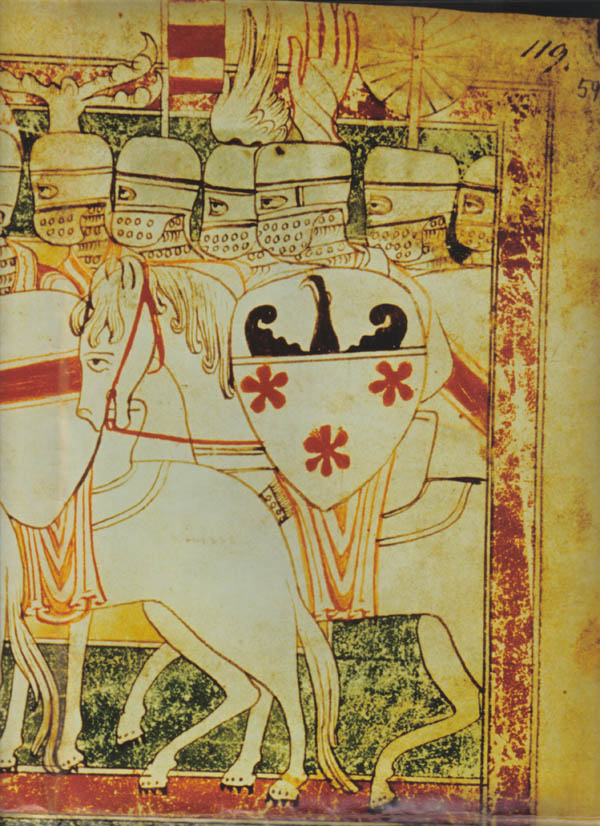 Im Berliner Aeneasroman ist im Vordergrund das Wappen der Grafen von Wertheim zu sehen. Im Hintergrund rechts ist als Helmzier ein Windrad zu sehen. Dieses Zeichen führten die Grafen von Rieneck, bis sie um 1250 den Schwan, zuerst nur in der Rothenfelser Linie, übernahmen. (Staatsbibliothek Berlin, Ms. germ. fol. 282, 59r)