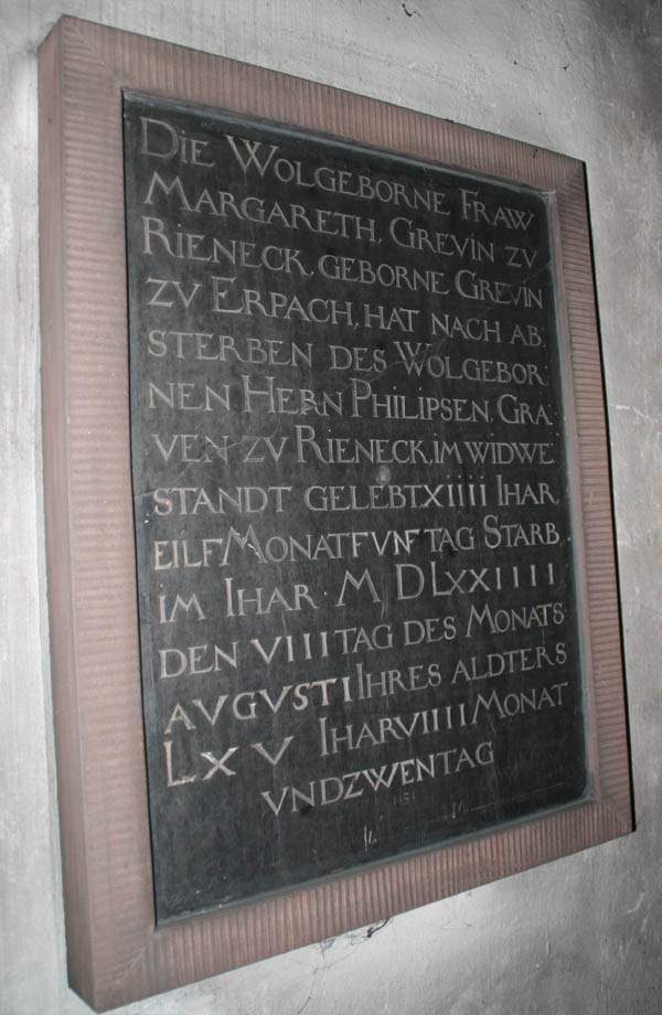 Grabmal von Philipp III. von Rienecks Witwe Margarethe, einer Schenkin von Erbach (gest. 1574), in der Pfarrkirche von Lohr. (Foto: Theodor Ruf)