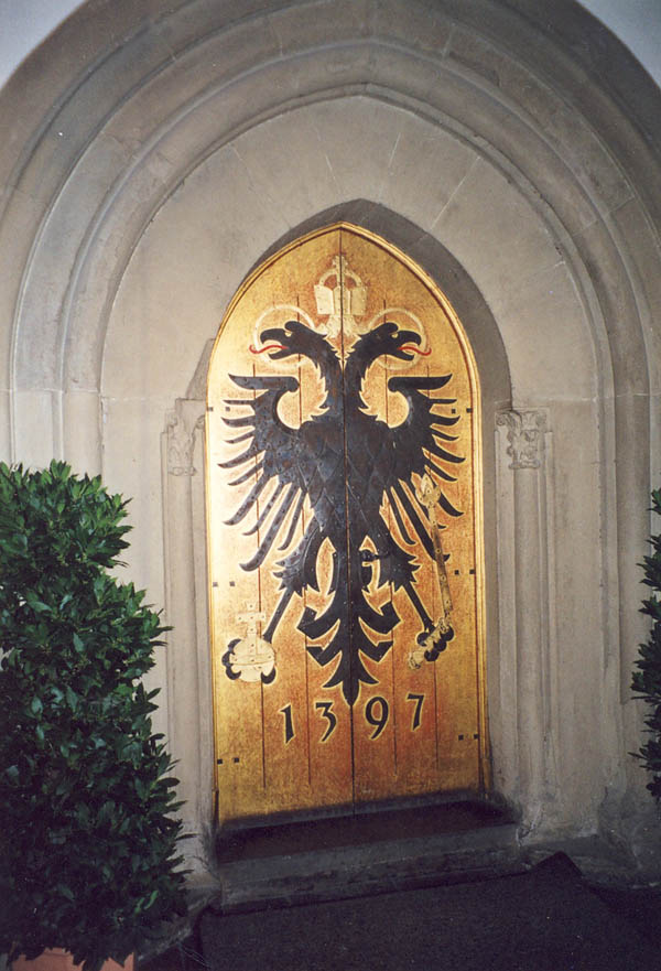 Reichsadler mit zerbrochenem Zepter an der Tür zum Wenzelsaal im Würzburger Rathaus (Grafeneckart). (Privat)