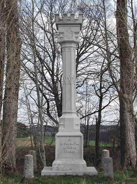 Das 1842 errichtete Denkmal bei Gammelsdorf. Initiator war der örtliche Pfarrer Franz Anton Gottstein (1790-1858), finanziert wurde das Denkmal durch Spenden aus Landshut, Straubing, Ingolstadt und Moosburg. (Foto: Zena Stöckl, Gammelsdorf)