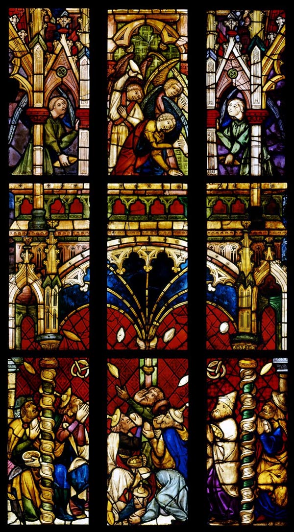 Mannalese Rothenburg o d T, St Jakob, Sakramentsfenster [Ausschnitt] Nürnberg, um 1390/1400 [Corpus Vitrearum Freiburg i Br, RToussaint]