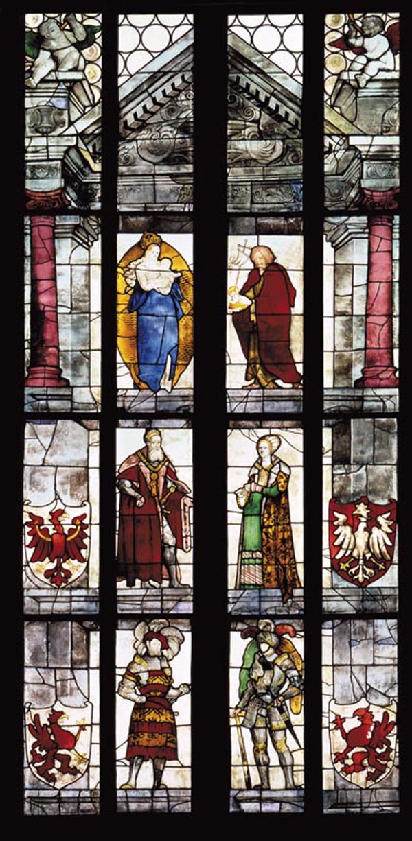 Markgrafenfenster im Chor der Nürnberger Sebalduskirche [Ausschnitt] Nürnberg, 1515, Werkstatt Veit Hirsvogel nach Entwurf Hans von Kulmbachs [Corpus Vitrearum Freiburg i Br, AGössel]