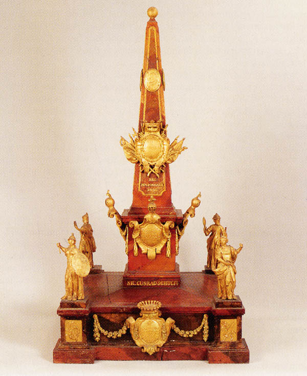 Modell für ein Denkmal an die Schlacht von Dornach im frühklassizistischen Stil, um 1775 Mit der Inschrift Sieg bey Dornach 1499 [Heimatmuseum Schwarzbubenland, Dornach; Foto: Mario Dagli Orti,Dornach]