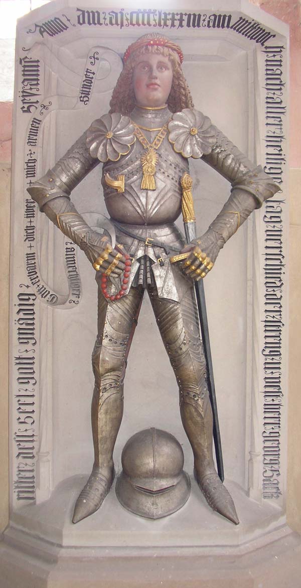 Epitaph des Georg Sack [gest 1483] im Münster zu Heilsbronn Der Ritter Georg Sack, ein fränkischer Niederadliger, ist repräsentativ für die Mitgliederstruktur des Schwanenordens Sein Epitaph zeigt die Ordenskette [Fotografie Markus Frankl,Privatbesitz]