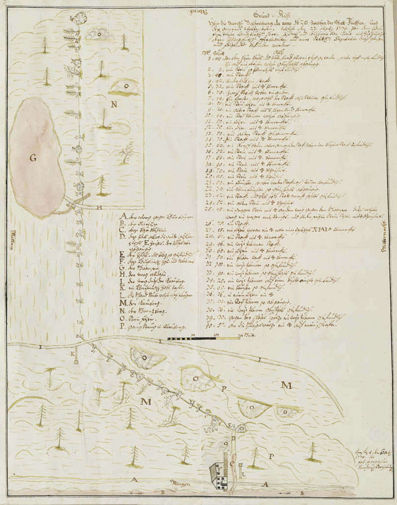 Die Karte entstand 1774 anlässlich einer Grenzbegehung zwischen Füssen (Hochstift Augsburg) und Waltenhofen (Herrschaft Schwangau, Kurbayern). Eingezeichnet sind die Standorte der Grenzsteine. Anlass für die Begehung war wahrscheinlich die Bereinigung der Grenze zwischen Österreich (Gericht Vils) und dem Hochstift Augsburg (Pflege Füssen) 1773. Nach der Begehung wurden auch zwei Grenzstein-Bozzetti (Entwurfsmodelle) angefertigt. (Staatsarchiv Augsburg, Plansammlung MüB 9607)