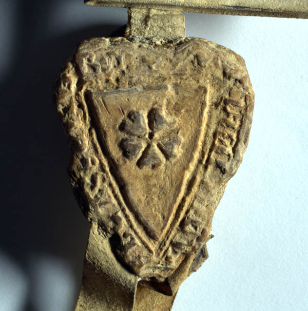 Frühes Rosensiegel der Ministerialenfamilie von Plassenberg, spätere von Guttenberg, an einer Urkunde von 1305. (Staatsarchiv Bamberg, Bamberger Urkunde 1364)