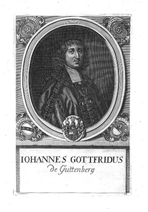 Johann Gottfried von Guttenberg (1645-1698), Bischof von Würzburg. (aus: Johann Peter Ludewig, Geschicht-Schreiber von dem Bischoffthum Wirtzburg …, Frankfurt 1713, 2. Band, nach 950)