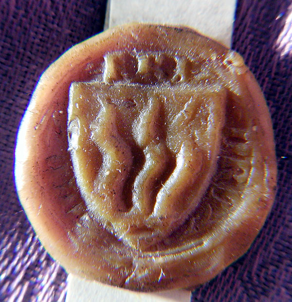 Siegel [Kopie] des Hammermeisters Friedrich Auer von Brennberg an der Hammereinung von 1387 Die „drei züngelnde Flammen“ sind das Symbol mittelalterlichen Hüttenwesens [Franz Michael Ress1960]