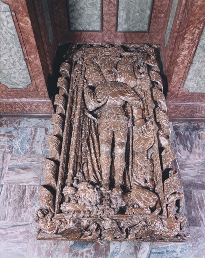 Grabmal für Herzog Albrecht II. von Straubing-Holland (reg. als Statthalter 1387-1397) im Chor der Karmelitenkirche in Straubing. In Auftrag gegeben von seinem Bruder Johann III. (reg. 1417-1425). Meister unbekannt. (Stadtarchiv Straubing, AllgemeineFotosammlung)