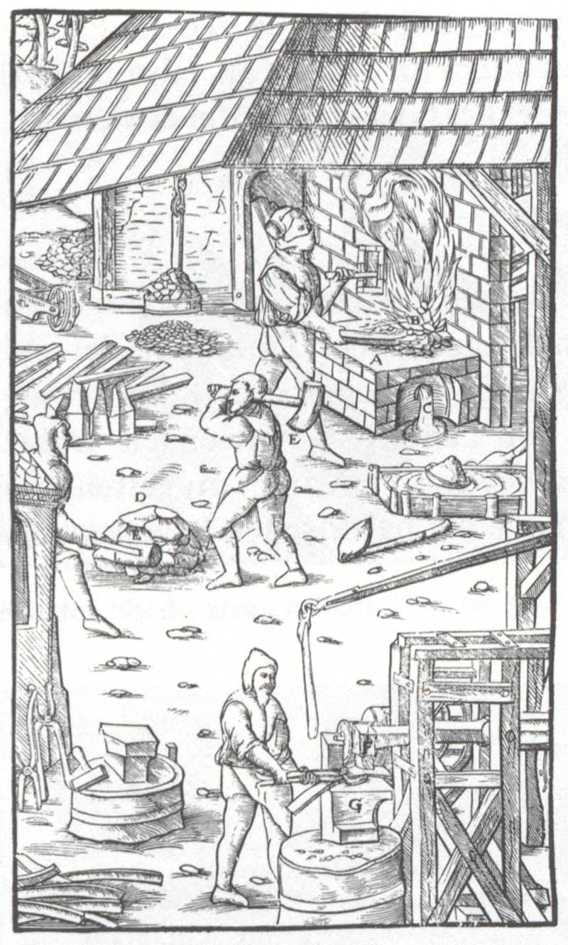 Eisenverhüttung im Zerrenherd in der Oberpfalz, 16. Jahrhundert. (Bergbau- und Industriemuseum Theuern)