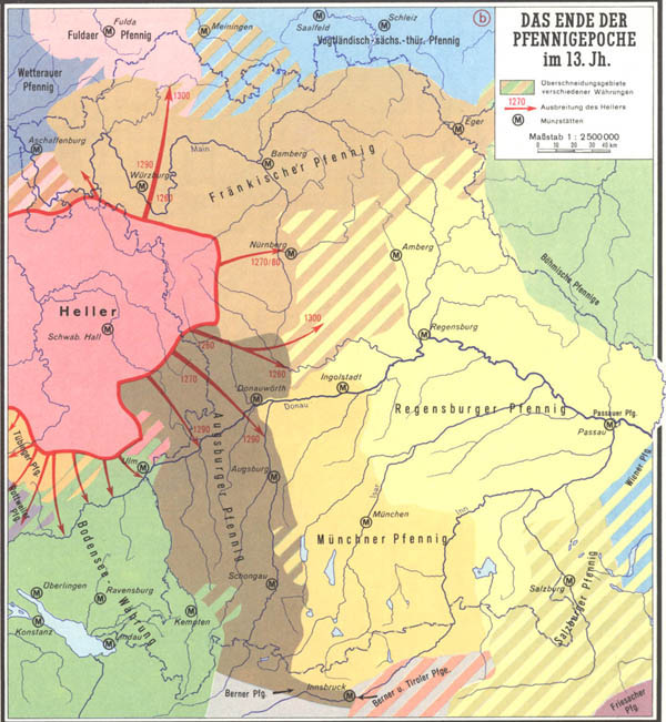 Das Ende der Pfennigperiode im 13. Jahrhundert. (aus: Max Spindler/Gertrud Diepolder, Bayerischer Geschichtsatlas, München 1969, 23. © Bayerischer Schulbuchverlag)