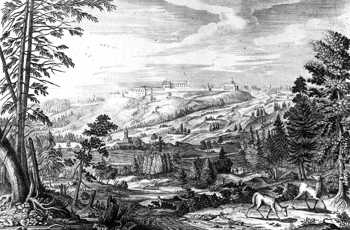 Im 18. Jahrhundert nahm die Übernutzung von Wäldern, insbesondere solcher in der Nähe von Siedlungen oder "holzfressenden" Gewerben, bedrohliche Ausmaße an. Aufgeklärte Zeitgenossen warnten vor einer allgemeinen Holznot und Energiekrise. Schloss Zeil mit Umgebung, undatierter Kupferstich, Augsburg, Verleger Wolff, 17. Jh. (Waldburg-Zeil'sches Gesamtarchiv Schloß Zeil)