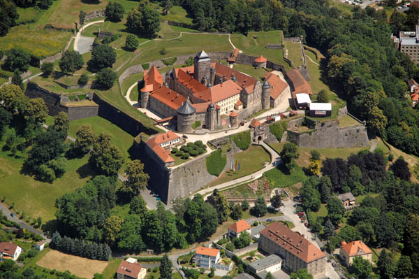 Die Festung Rosenberg oberhalb von Kronach. Die im Kern mittelalterliche Burganlage wurde im 17. und 18. Jahrhundert zu einer Festung ausgebaut, die die nördlichen Gebiete des Hochstifts Bamberg erfolgreich sicherte. (Stadt Kronach)