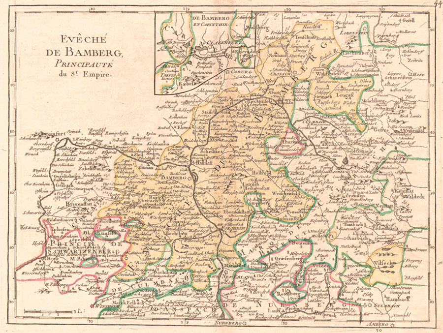 Das Bistum Bamberg im 18. Jahrhundert. (aus: Georges-Louis Le Rouge, Atlas Portatif Des Militaires Et Des Voyageurs. Tome 2, Paris 1759, Nr. 44)