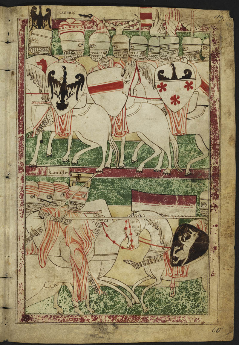 Das Wertheimer Grafenhaus hatte bereits zu Beginn des 13. Jahrhunderts ein so hohes Prestige erworben, dass in einer illustrierten Handschrift von Heinrich von Veldekes (12. Jh.) Eneide durch die Zuordnung seines Wappens zu dem des Turnus, des Gegners von Aeneas, mythologisch in der Antike verankert werden konnte. (Staatsbliothek Berlin - Preussischer Kulturbesitz, Ms. Germ. 282, fol. 59r)