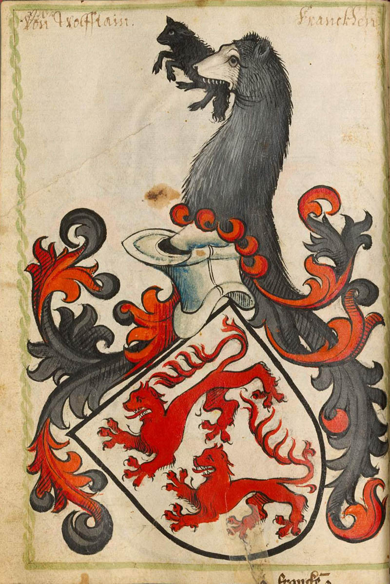 Das Wappen der Wolfsteiner im Scheibler'schen Wappenbuch, um 1450/80. (Bayerische Staatsbibliothek, Cod.Icon. 312 c., fol. 162)
