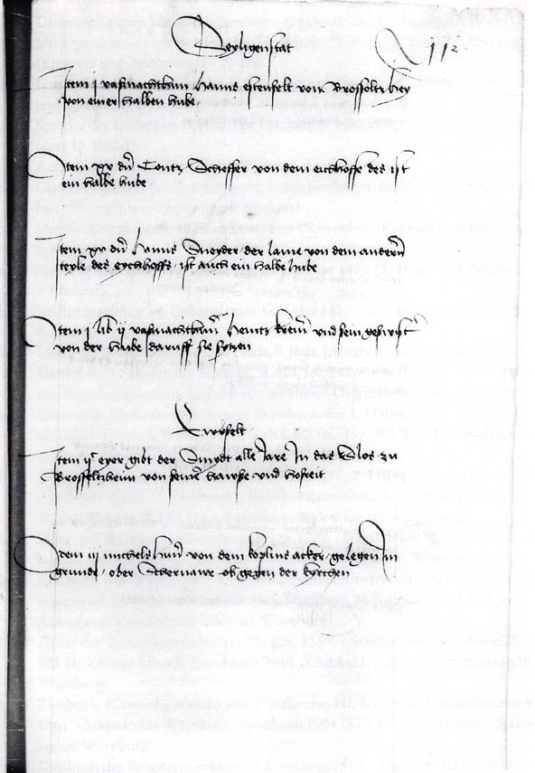 Das älteste Würzburger Salbuch um 1470 mit Beschreibung der Rechte und Einnahmen des Hochstifts aus 18 Ämtern, hier Zinseinnahmen aus Seligenstadt und Euerfeld. (Staatsarchiv Würzburg, Würzburger Salbücher 1, fol. 112r)