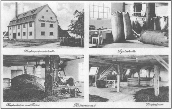 Postkarte von Hohenwart (Lkr. Pfaffenhofen an der Ilm), um 1940. Abgebildet ist die "Hopfenpräparierhalle", in der der Hopfen zum Weiterverkauf vorbereitet wurde. (Foto: Deutsches Hopfenmuseum Wolnzach)