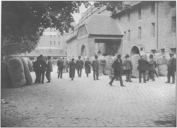 Hopfenmarkt in Nürnberg, um 1920. Seit 1872 am Kornmarkt angesiedelt, wo ein großes Lagergebäude stand. (Foto: Deutsches Hopfenmuseum Wolnzach)
