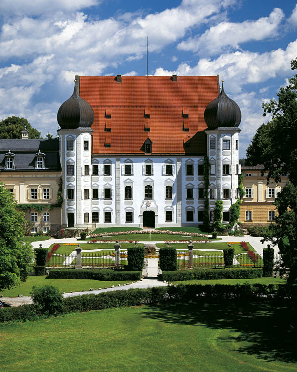 Schloss Maxlrain. Das Haupthaus wurde nach einem Brand 1582-1585 neu errichtet. Die Schlossflügel wurden in ihrer heutigen Gestalt erst in den 1870er Jahren hinzugefügt. (aus: Erich Prinz von Lobkowicz [Hg.], Maxlrain. Lebendige Tradition, Haar - München 2007, 42) (Erich Prinz von Lobkowicz/Foto: Anja Walz)
