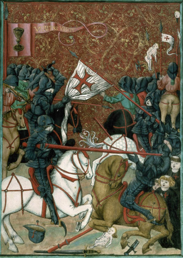 Zeitgenössische Darstellung der Hussitenkriege, 1419-1434. Die Abbildung stammt aus dem sog. Jena Codex, Narodni Muzeum, Prag. (akg-images / Universal Images Group)