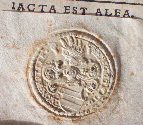 Siegel: Johann Gottfried von Hutten, um 1620, mit Wappen der von Hutten zum Steckelberg [Privatbesitz der Familie Hutten; Foto:Hanna]
